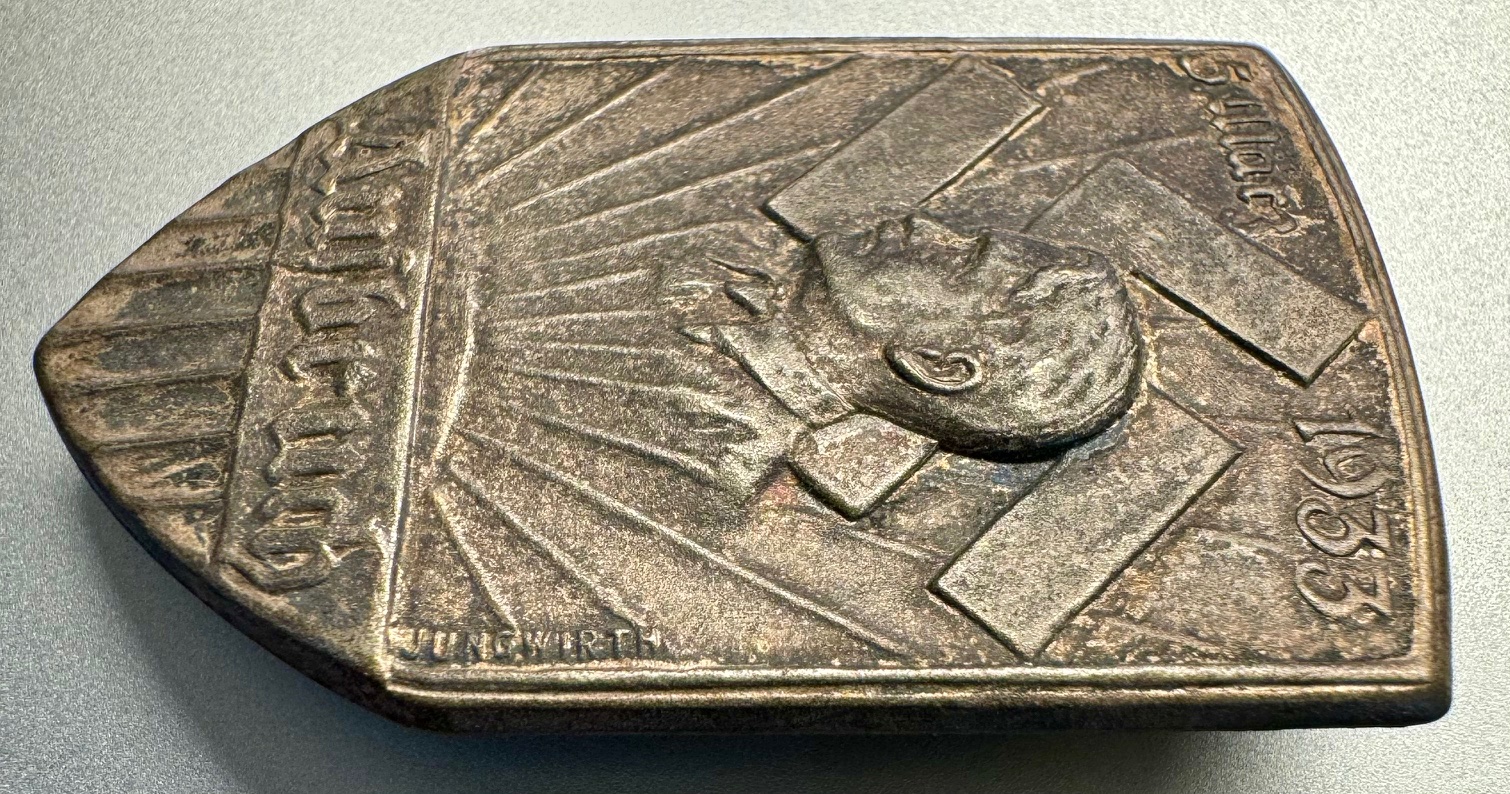 5. März 1933 Ausbruch Tinnie, marked Jungwirth on the one side, 28mm X 46mm, metal pinback, rare