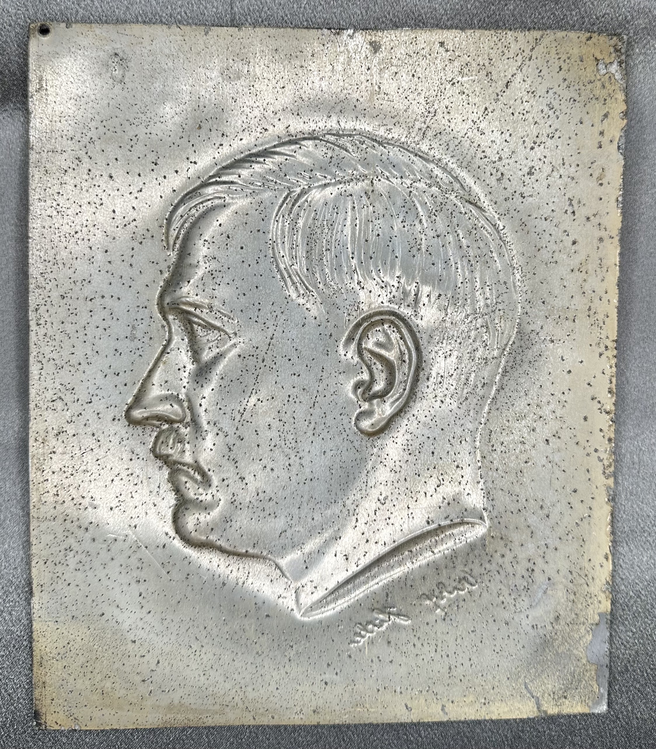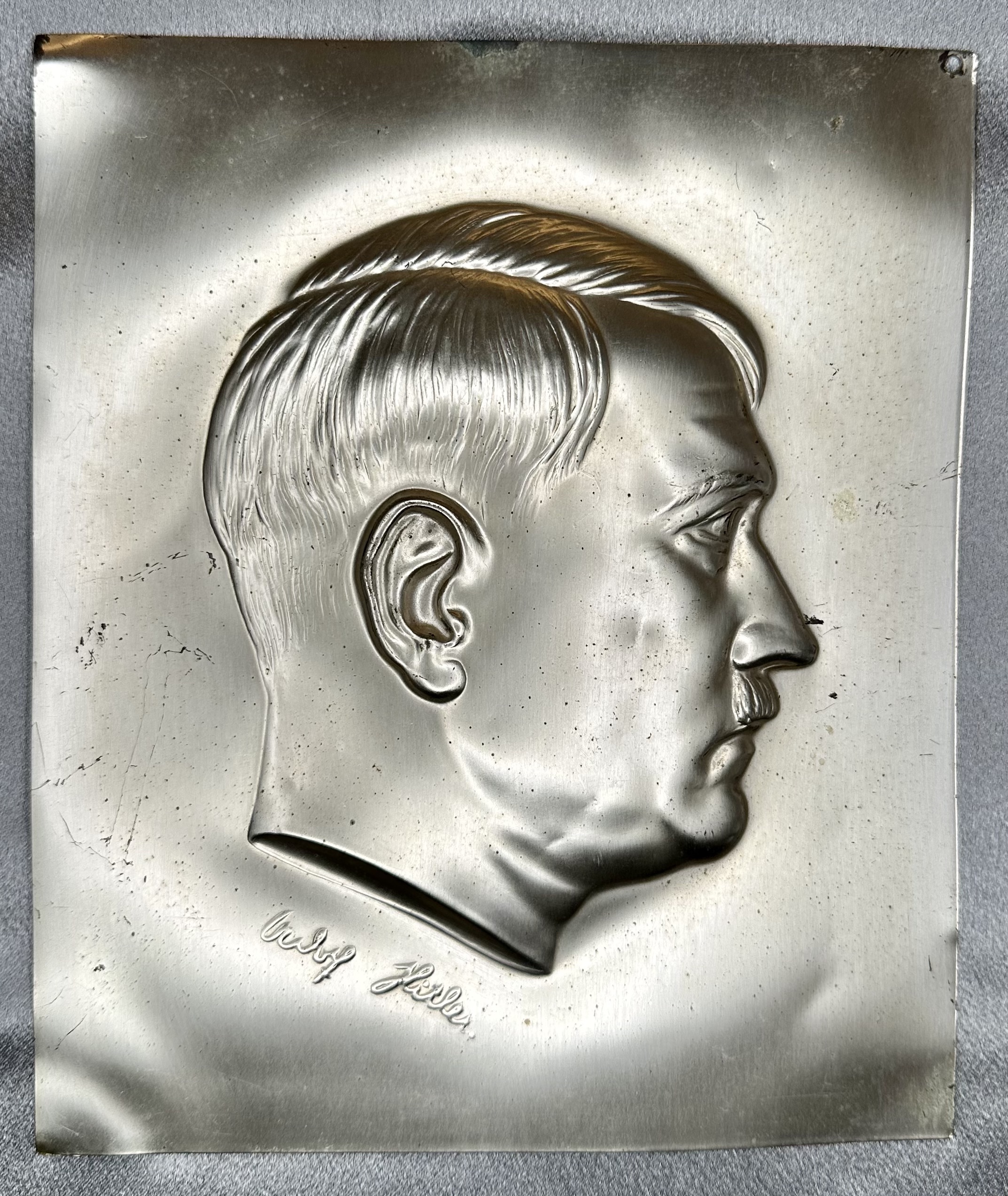 Adolf Hitler Plaque. These came in a black wooden frame during the period, stamped silver plated metal, 168mm X 202mm in size, C-351 in the Colbert Hyder book