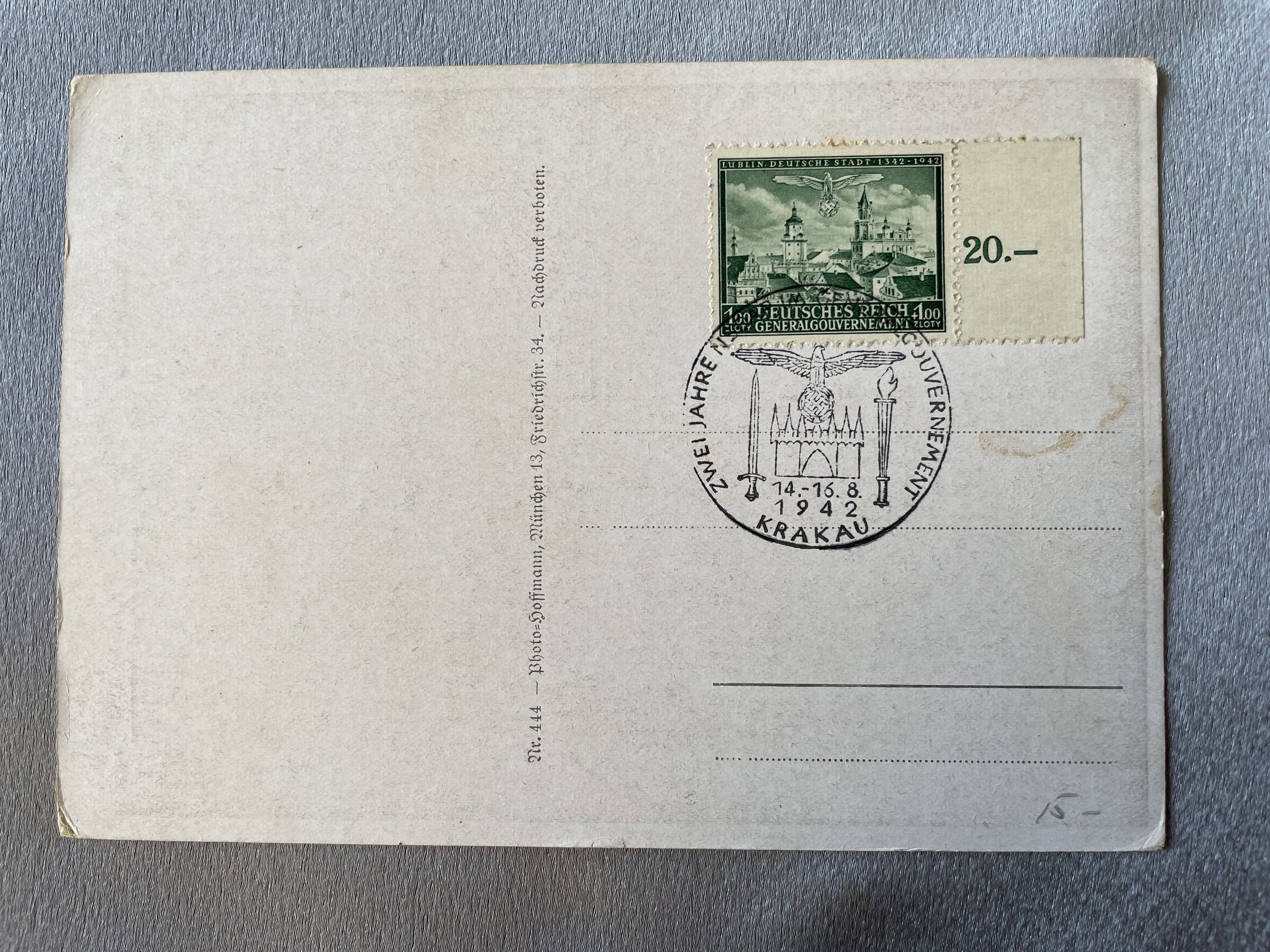 Adolf Hitler Hoffmann Postcard, with general government stamp and cancel, rare
