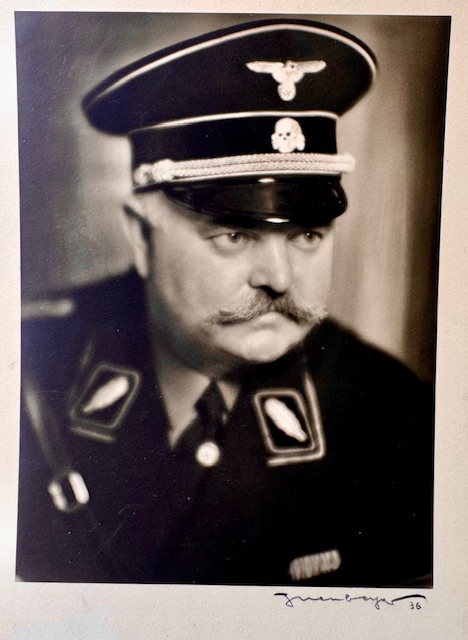 Alfred Arnold Sr. Studio Portrait, 9 1/4" X 12", shown wearing his SS tunic and visor. Alfred Arnold Sr. was born in Ellhofen on 16.6.1888. From 1907-1909 he served voluntary with in the 29th field-artillery-regiment. He worked as a self-employed farmer 1914-1916. He was a soldier in 1916 when he became Unteroffizier in the 1. Batterie of the 65. replacement field-artillerie-regiment. In 1931 he became member of the NSDAP, Nr. 595088; he also became special district advisor and speaker of the NSDAP farmers in 1932. He became member of the Württembergische Landtag on 12.11.1933 and member of the Reichstag. In 1933 he was agricultural advisor of the Gau Würtemberg; agricultural Staatskommisar; leader of the Würtembergische farmers. In 1934 he joined the SS, Nr. 14671601.02. with the rank of SS-Hauptsturmführer, 20.04.1934 SS-Sturmbannführer, Staff SS Rasse- und Siedlungshauptamt (racial- and settlement main office), 20.04.1935 SS-Obersturmbannführer, 1935-1942 Rasse und Siedlungshauptamt, 15.09.1935 SS-Standartenführer, 30.01.1937 SS-Oberführer, 09.11.1942 SS-Brigadeführer; Gau-office leader (Gau-Amtsleiter) for the land people in the Gau Würtemberg-Hohenzollern, Gau-Haupt-Abschnittsleiter1944 Staff SS-Oberabschnitt Main. Arnold survived the war and ran a building business.