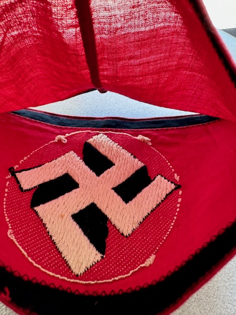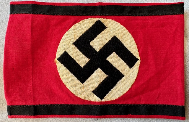 Rare and desirable Allgemeine SS armband. These variants don’t show up often and are considered very rare. Shows a flat woven bevo-style swastika on a thin cotton armband. The armband has been worn and is sewn together, came out of an old collection.