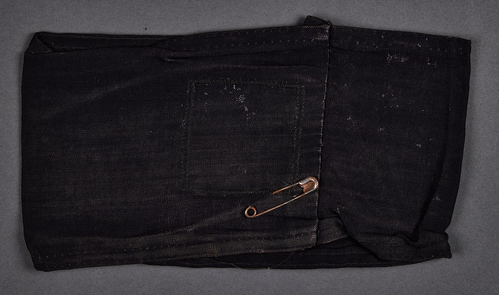 Aufsicht Armband, supervision armband for unknown use, sewn at the back, black band with silver chain stitch lettering, approx. 15" in length