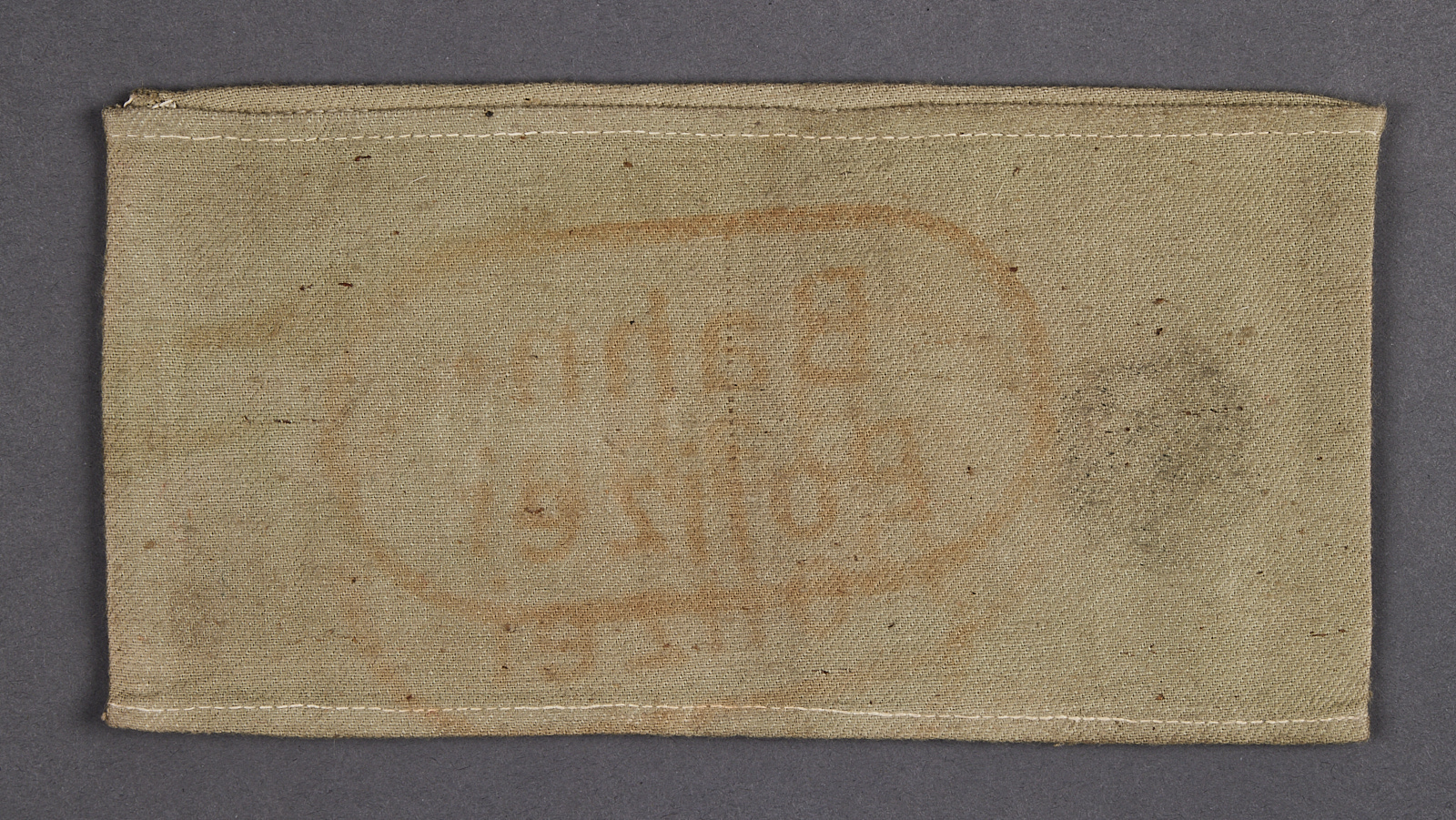 Bahn-Polizei Armband, print on cloth, sewn, approx. 16" in length