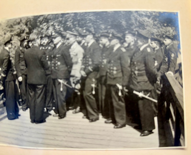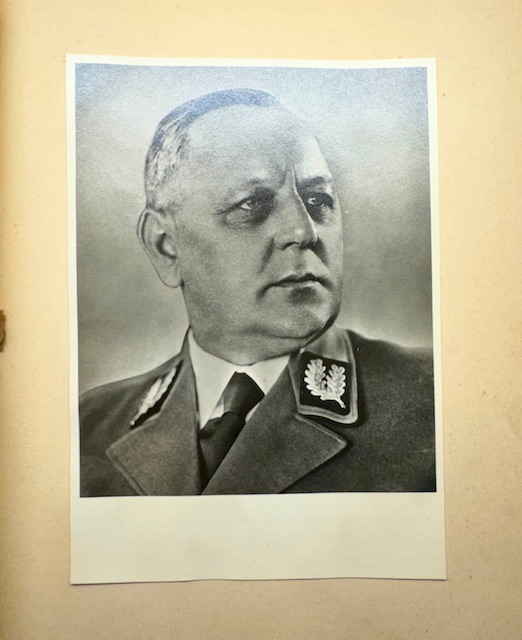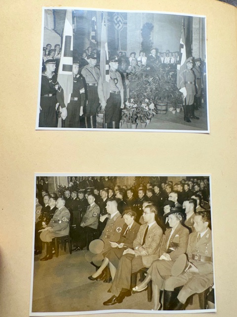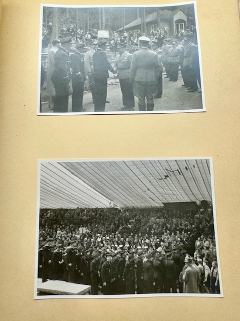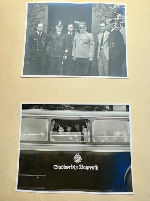 Dedication at the front: "Unierem tapseren U-Boot Kameraden zur Erinnerung an die Bayreuther Urlaubstage im Juli des Kriedsjahres 1940" (To our brave U-boat comrades in memory of the Bayreuth holiday days in July of the war year 1940), was dedicated by Gauleiter Fritz Wächtler. The album is 8" X 9 1/2" in size with 99 photos, most are 3 1/2" X 4 1/2" in size with a few 5" X 7". Photos in very good condition, album spine is tattered.