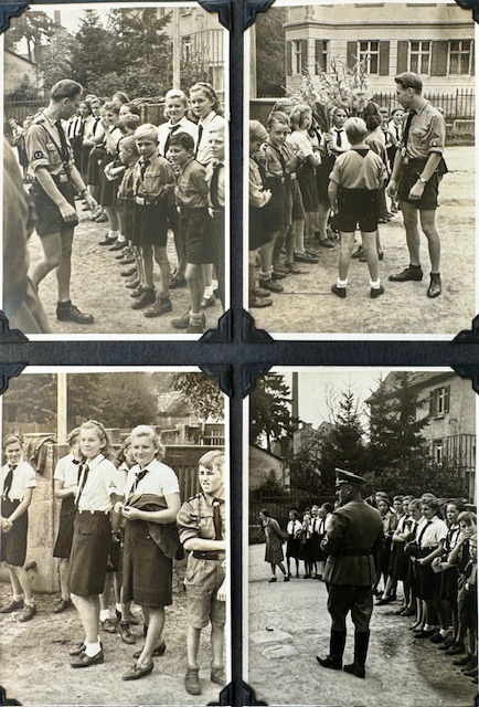 BDM / Hitler Jugend Photo Group, possibly in a school yard, all postcard size.