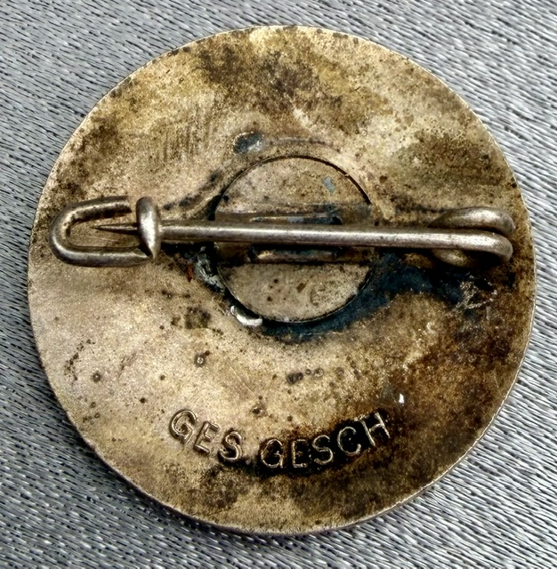 Badge of the DLB (Danzig Air Raid Protection Association), 23mm. Marked on reverse GES GESCH. Made in enameled and silvered Tombac.