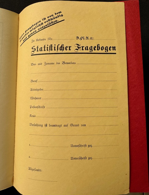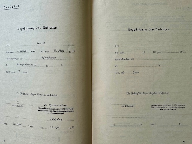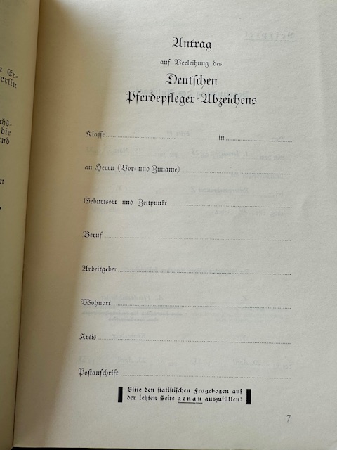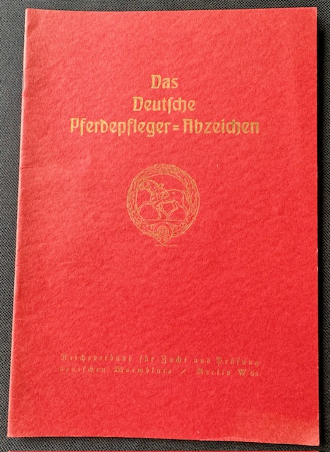 Period booklet for obtaining the German Horse Groomers Badge, never filled out or used, excellent condition