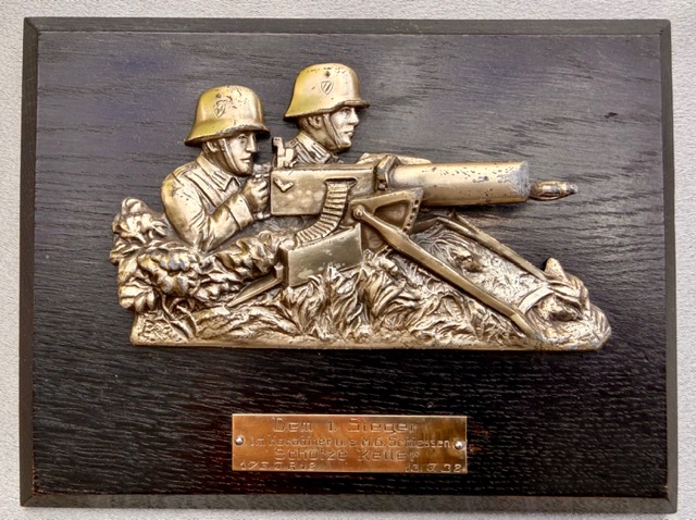 The 1st winner in the carbine and machine gun shooting for shooter Keiler in 1938, approx. 7" X 5 3/8" in size.