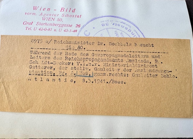 Dr. Goebbels with, Bohle, A. Hess, and Schmidt-Decker of the AO, period press photo, 7" X 5"