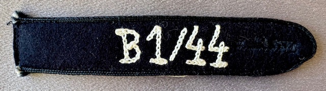 Early DJ Shoulder Board "B1/44". Rare shoulder board for a DJ member of the Jungbann "Westrich" from "Hessen-Nassau", which was created on September 15, 1934. The embroidery is the chain stitch style. This same should board is shown on page 429 in the Saris "Handbook of the Hitler-Jugend". RZM tag to reverse.