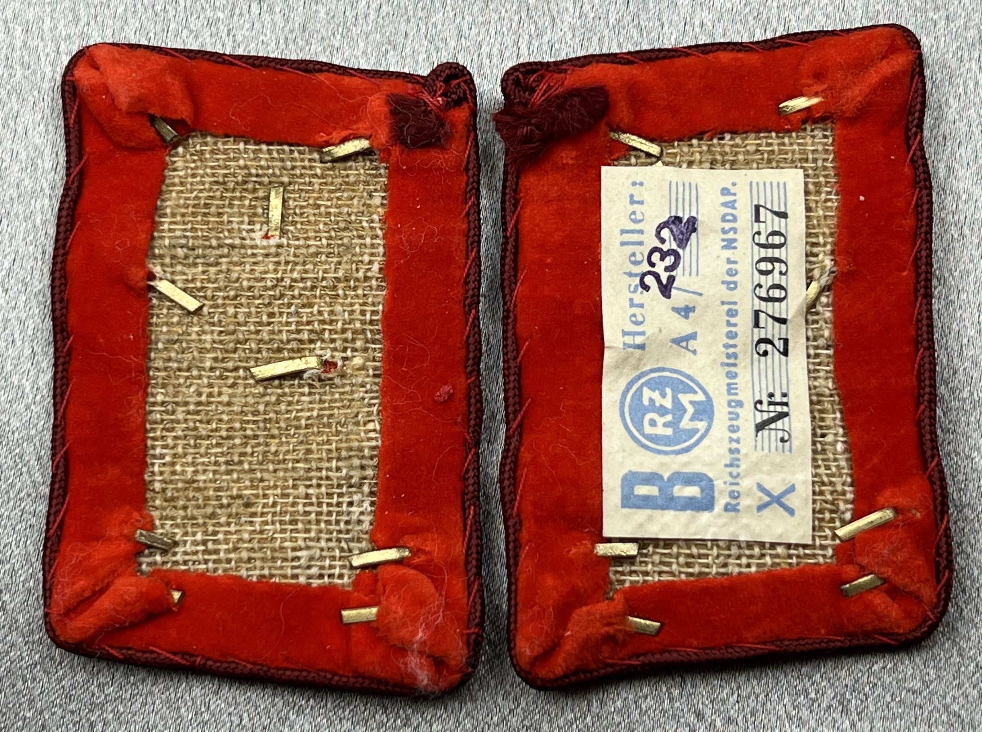 Gauleitung Hauptbereichsleiter Tabs, pair, RZM tag, nice condition