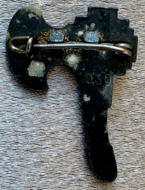 Germanic Axe WHW Tinnie, from the 1940's collection, metal pinback, approx. 21mm x 27mm