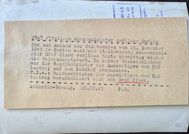 Graf Galeazzo Ciano Photo with Ribbentrop, period press photo, 7" X 5"