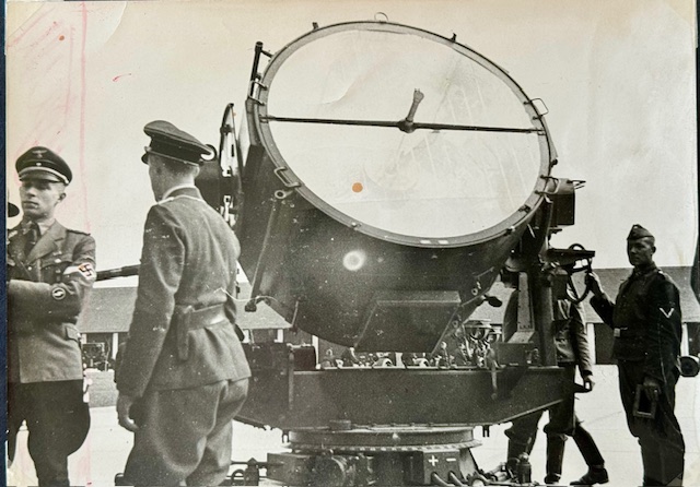 Heavy anti-aircraft searchlight Photo. Press photo, approx. 7" X 5" in size.