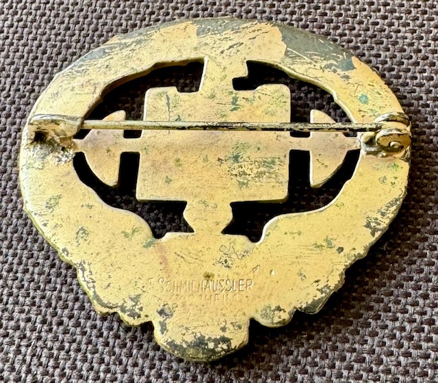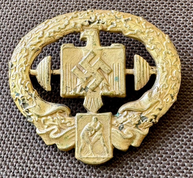 Heavy Athletics Sports Badge, in silver gilt, Second model, 41mm x 37mm, maker marked, nice condition.