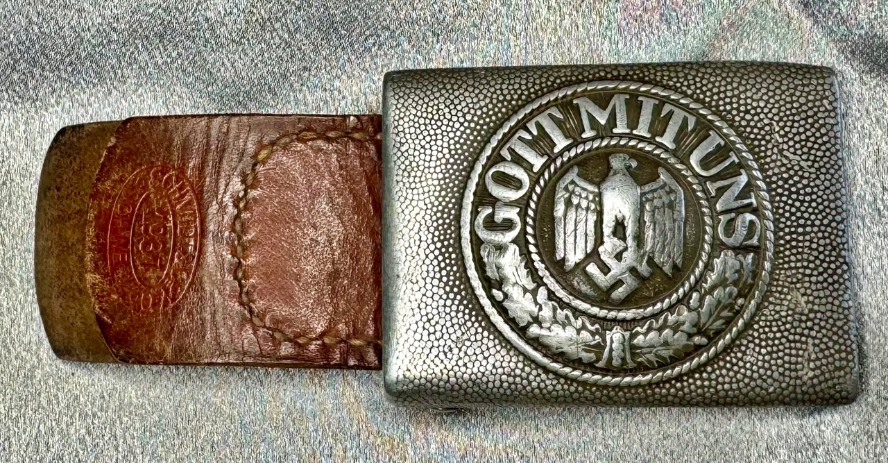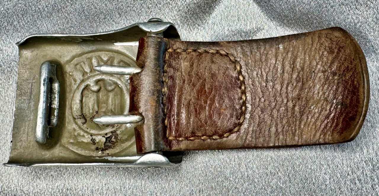 Heer Aluminum Buckle, made by Schmidt & Co., Schwelm and dated 1937 , complete with maker marked leather tab.