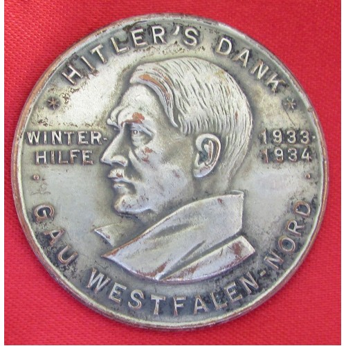 Hitler Thanks District North Westfalen 35mm, Silver metal, pinback, marked Paulmann & Crone, Lüdenscheid. C-211 in Colbert/Hyder Book. Missing pin.