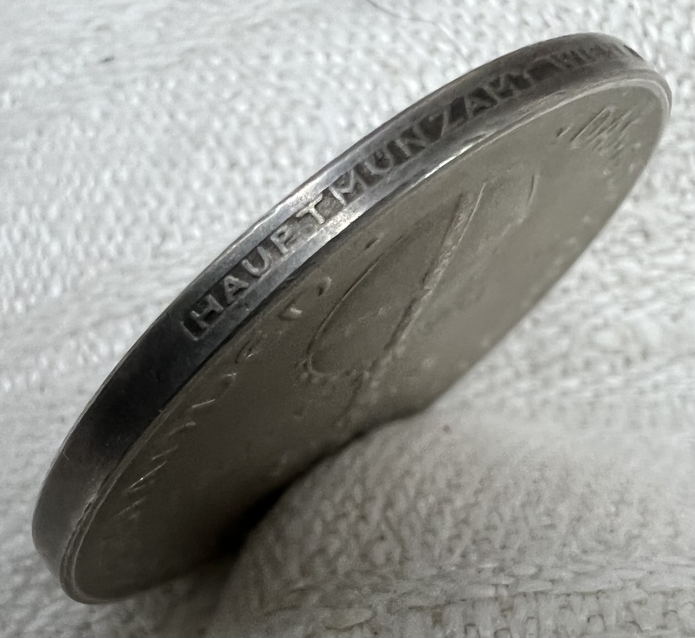 Bust of Hitler facing right with the surrounding inscription, "DER EINER UND FÜHRER ALLER DEUTSCHEN" (The one and only leader of all Germans). Below the bust is the artist signature, "Hanisch Concee". Reverse has orb and cross with incused dates, "13.3.1938" and "29.9.1938"' on either side. The surrounding inscription reads, "DAS GROSSDEUTSCHE REICH IST ERSTANDEN" (The Greater German Empire is Arisen). The artist's signature is found incused near the rim around the 4-5 0'clock position. The bottom side is stamped, "HAUPTMÜNZAMT WIEN 835". Struck in silver, 36mm. C-114 in the Colbert-Hyder book.