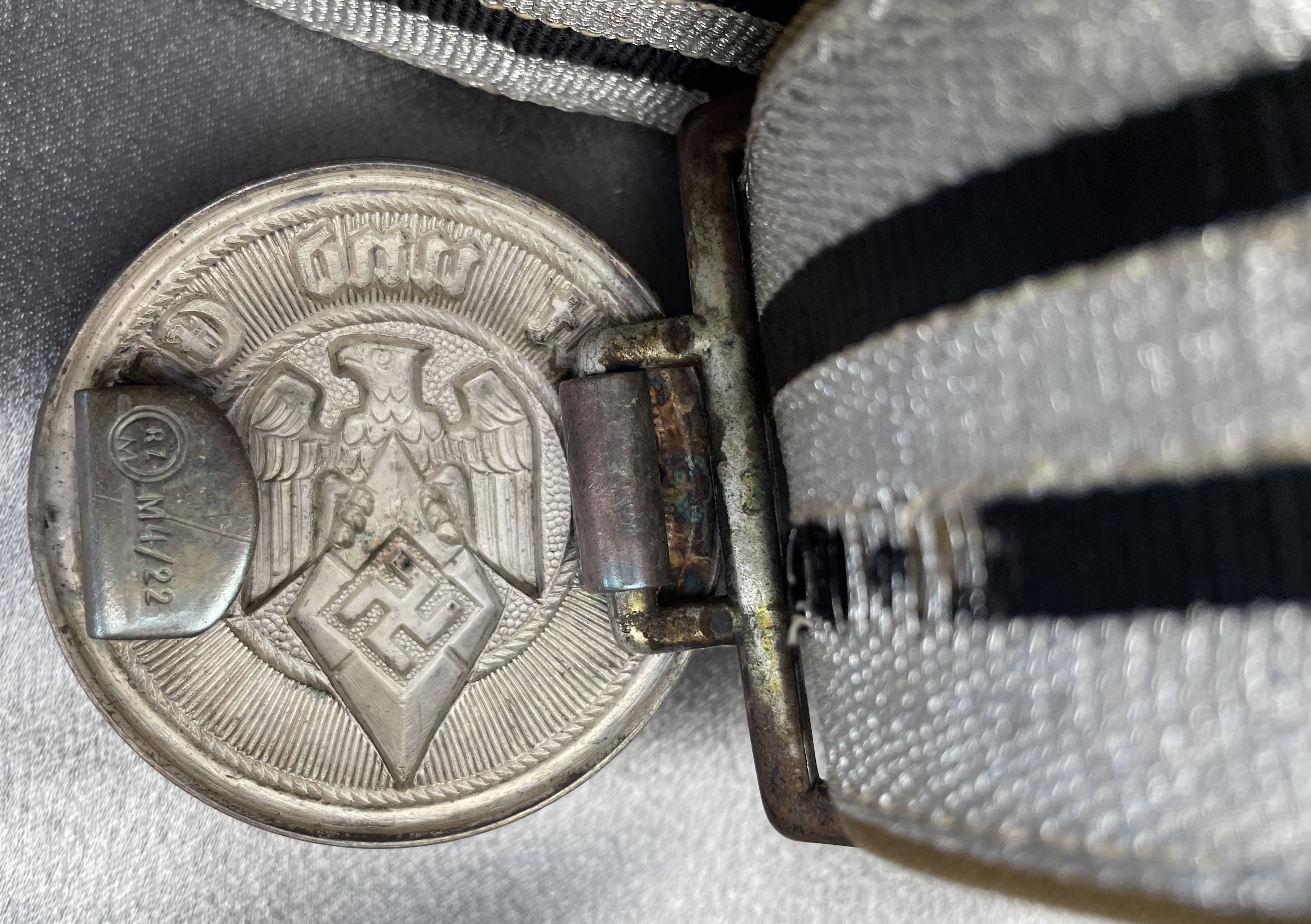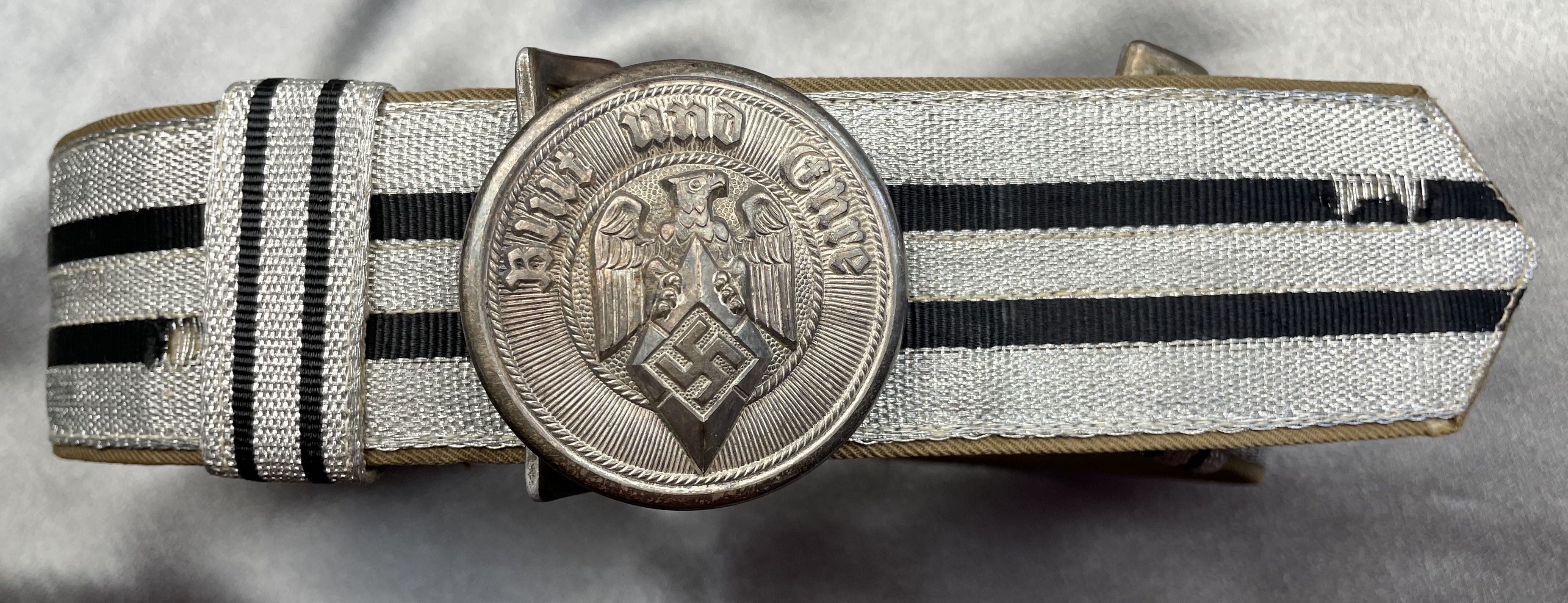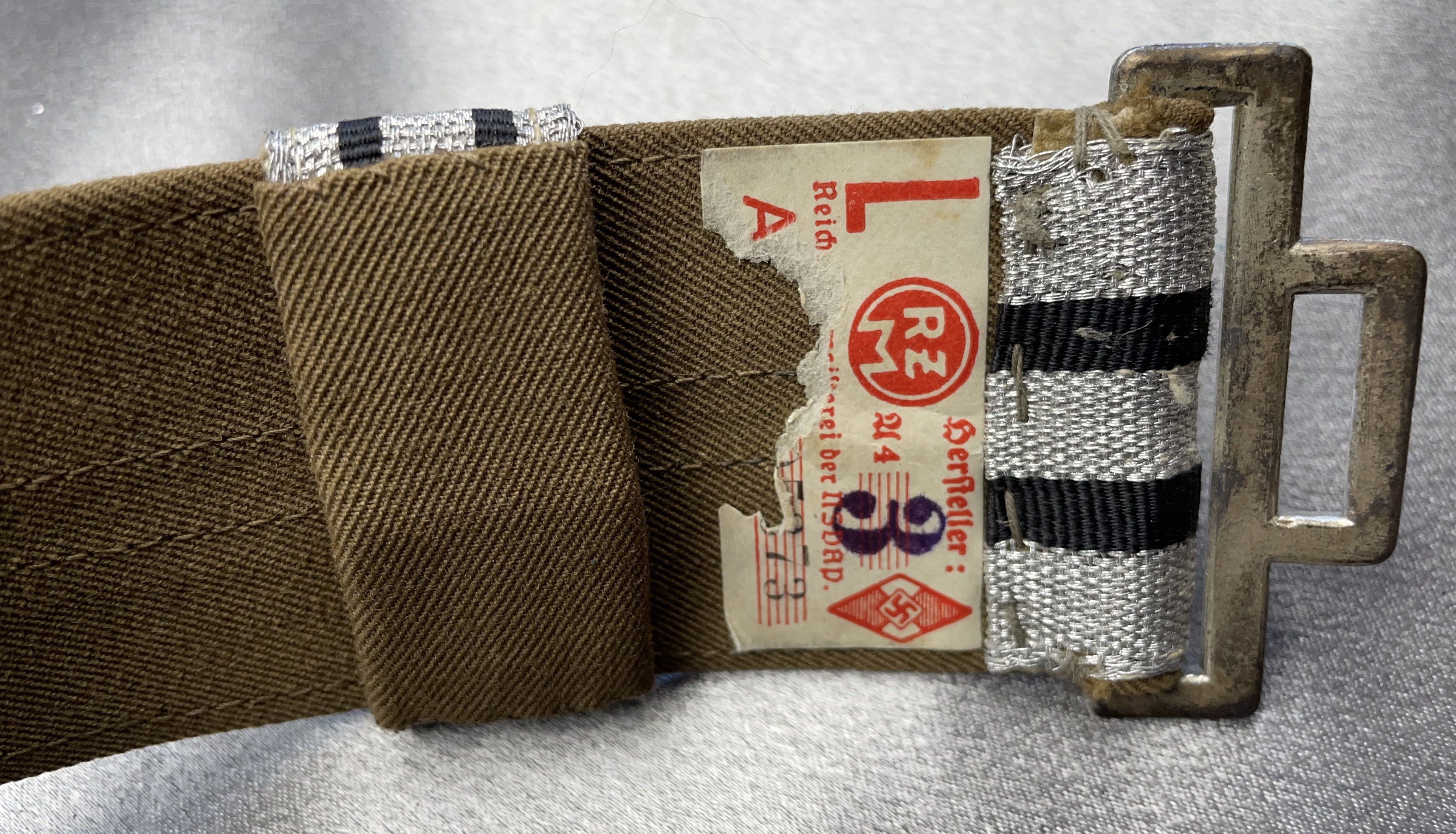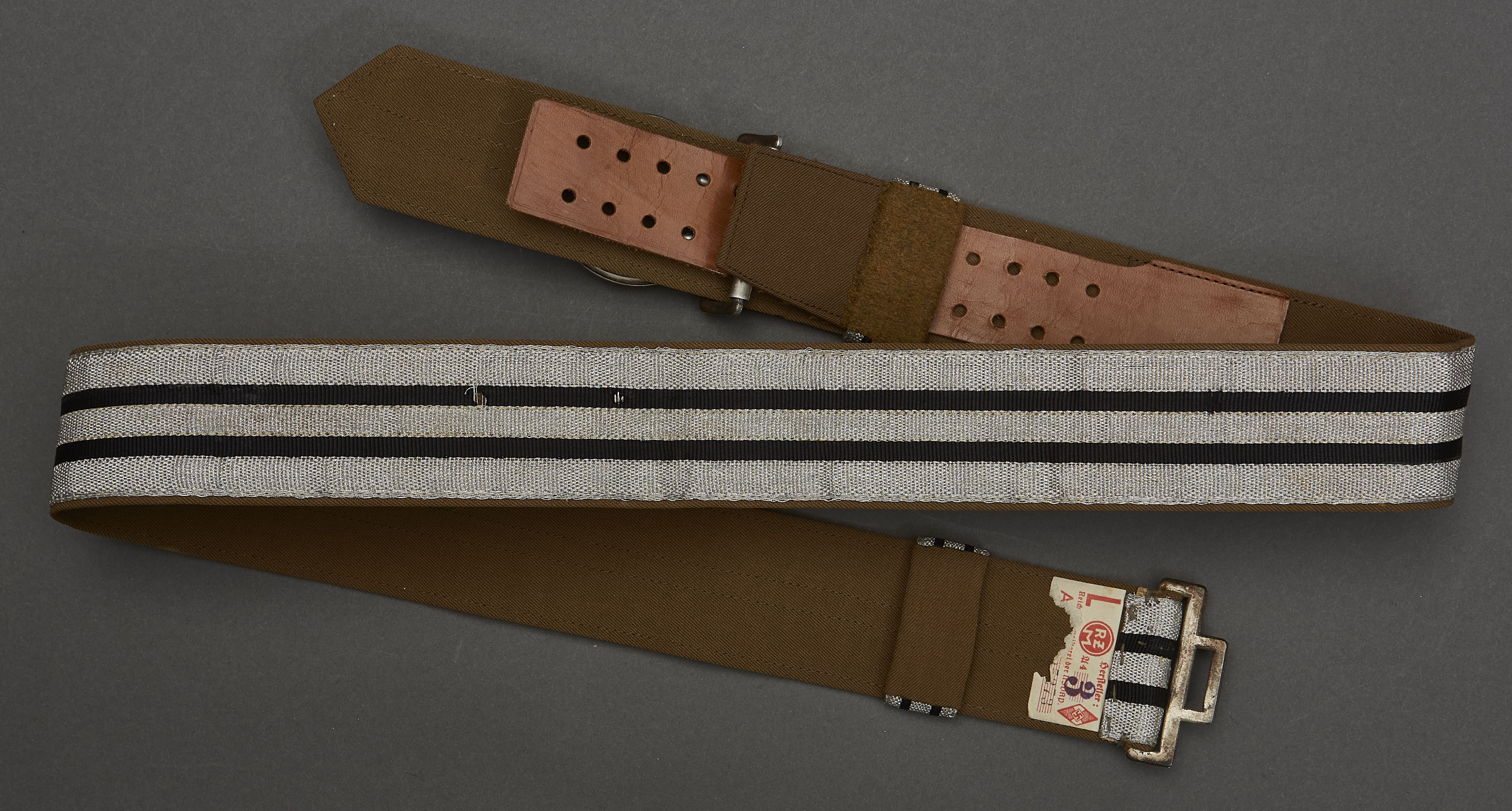 Hitler Youth Leader Brocade And Belt, belt is approx. 43" in length, partial RZM tag, almost mint