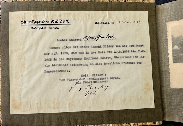 Hitler Youth Gefolgschaft 32/56 Photo Album, 10.5" X 7.5" in size, 68 images including trip to Feldherrnhalle, Munich, nice