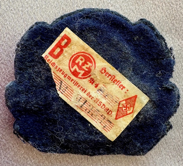 Hitler Youth Marine Cap Insignia, RZM tag to reverse