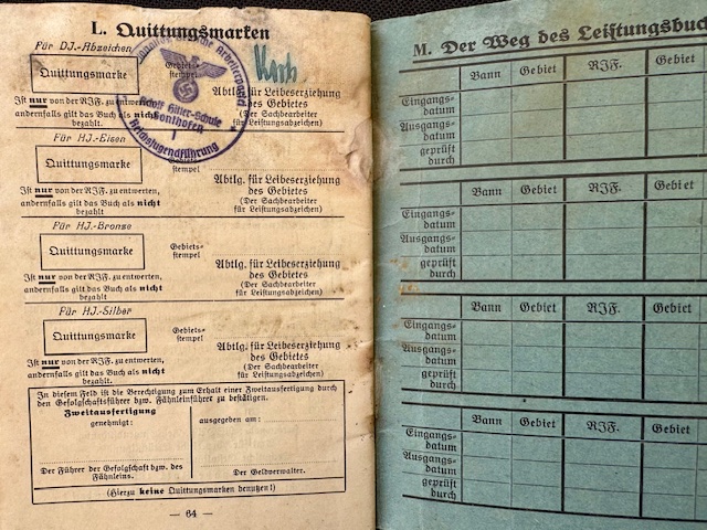 Hitlerjugend Leistungsbuch, complete, moisture damage