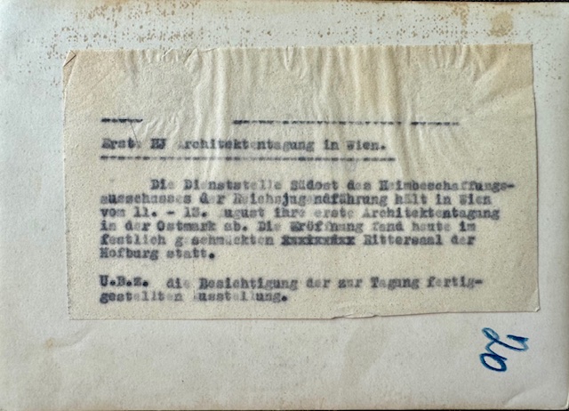 HJ architectural design in Vienna with SA high leaders. Press photo, approx. 7" X 5" in size.