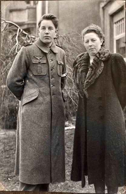 Heinz Hessling, luftwaffe flak helper with his mother in Beckum 1943, period photo, approx. 4 3/4" X 7" in size