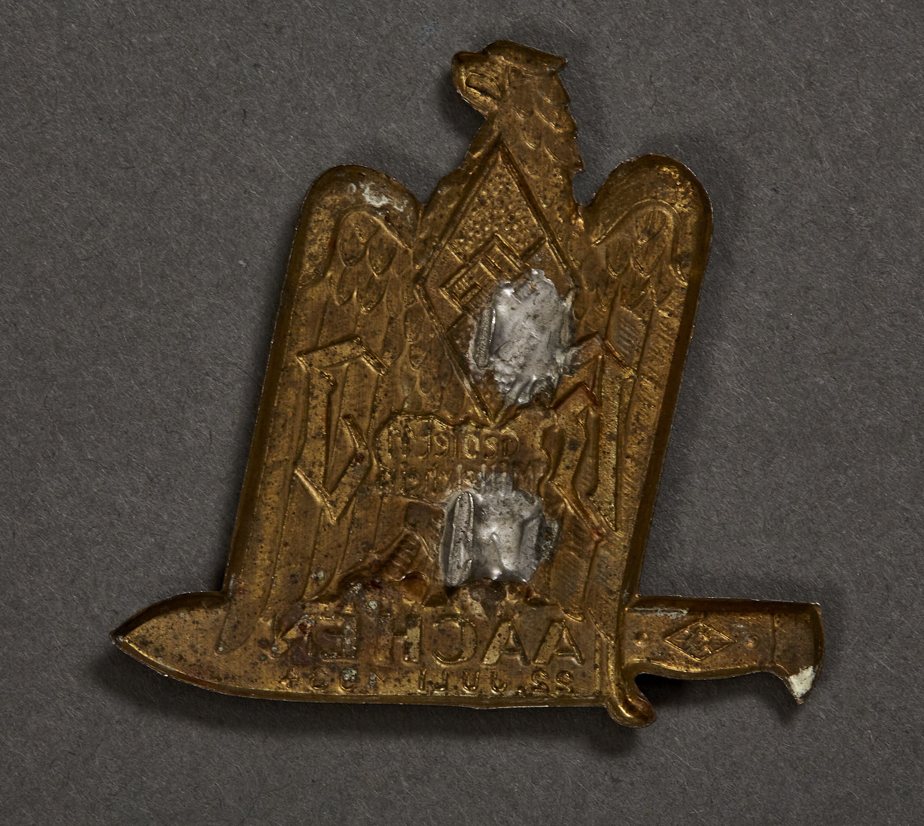 HJ Gebiet 11 Mittelrhein Aächen 22. Juli 1934 Tinnie, metal, 47mm X 45mm, no pin