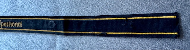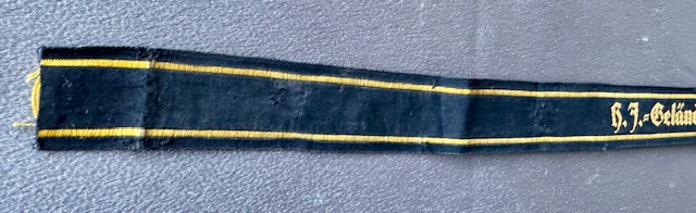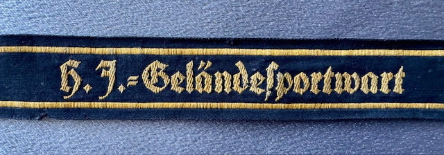 HJ Gelandesportwart Cuff Title (HJ Field Event Attendant), this one was used with 3 of the 5 snaps still intact which were used to fasten to the sleeve, approx. 16" in length
