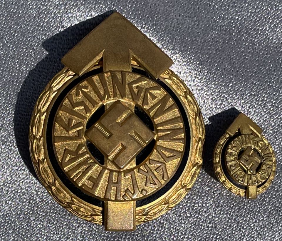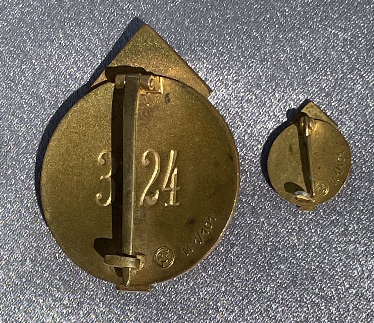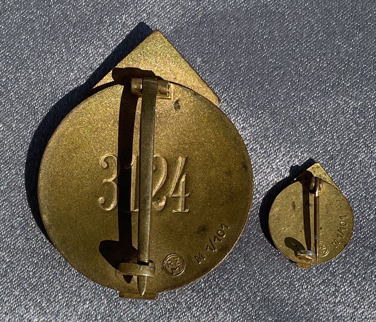 HJ Leader Sports Badge in Gold, numbered 3124, with miniature, both marked RZM M1/101