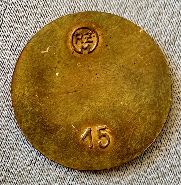 HJ Membership Badge, blank plate, never enameled, reverse marked "RZM 15", 22.5mm