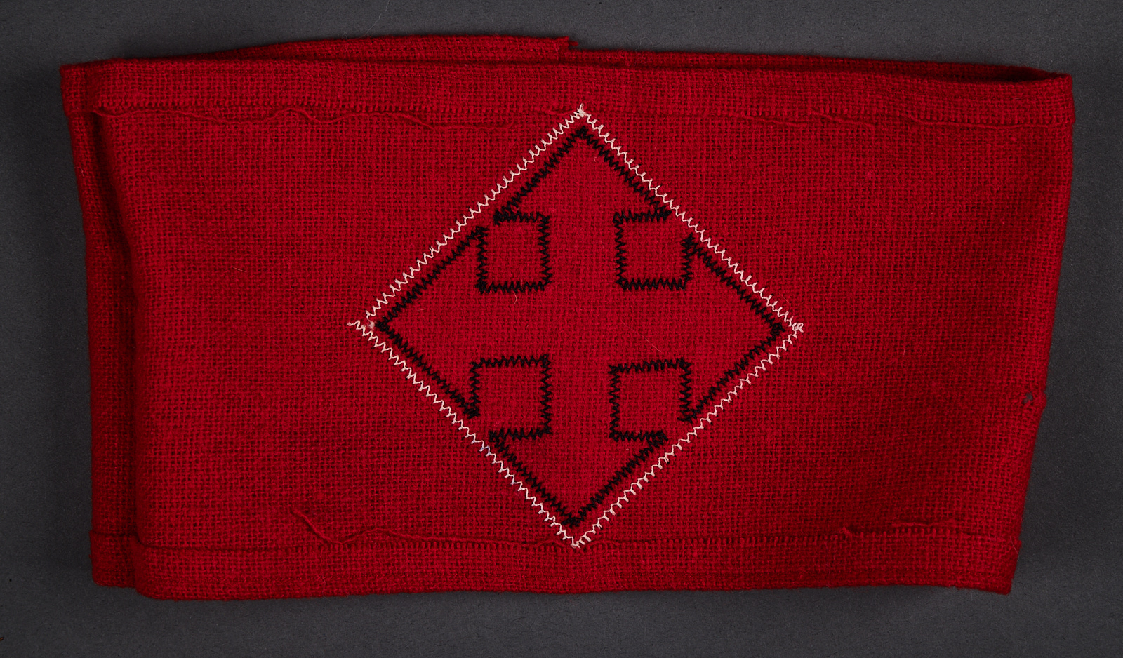Hungarian Arrow Cross Party Armband, maker ink stamped inside, sewn at the back, approx. 17" in length, very rare