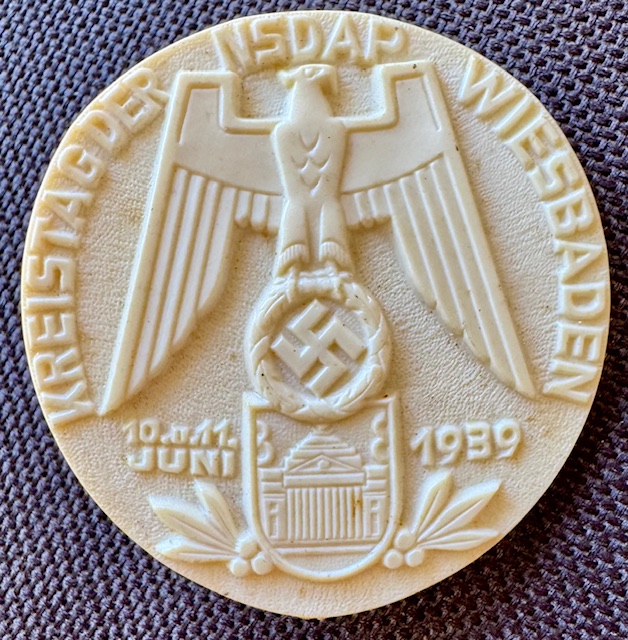 Kreistag der NSDAP Wiesbaden 10. u. 11. Juni 1939. Plastic pinback. RZM & maker marked.