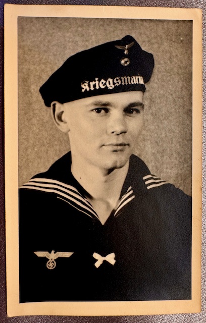 Kriegsmarine Sailer Photo, cap tally reads "Kriegsmarine", approx. 3 1/4" X 5 1/4" in size (postcard size).