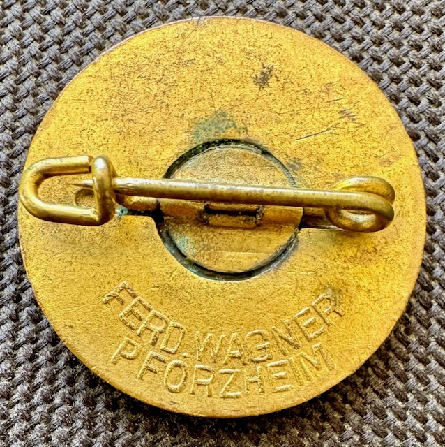 Nationaal Socialistische Nederlandsche Arbeiderspartij (NSNAP) Membership badge, reverse maker marked for Ferdinand Wagner, Pforzheim. 23mm. Very rare.