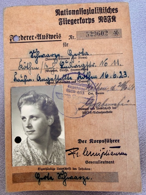 Nationalsozialistisches Fliegerkorps NSFK Förderer- Ausweis issue to a female. very rare