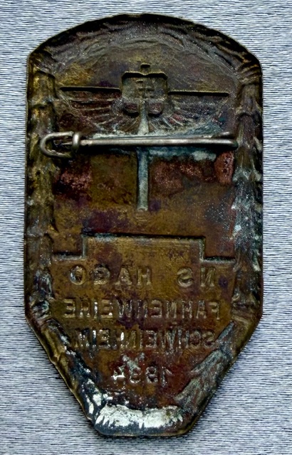 NS Hago Fahnenweihe Schweinheim 1935 Tinnie, metal pinback, 26mm X 46mm