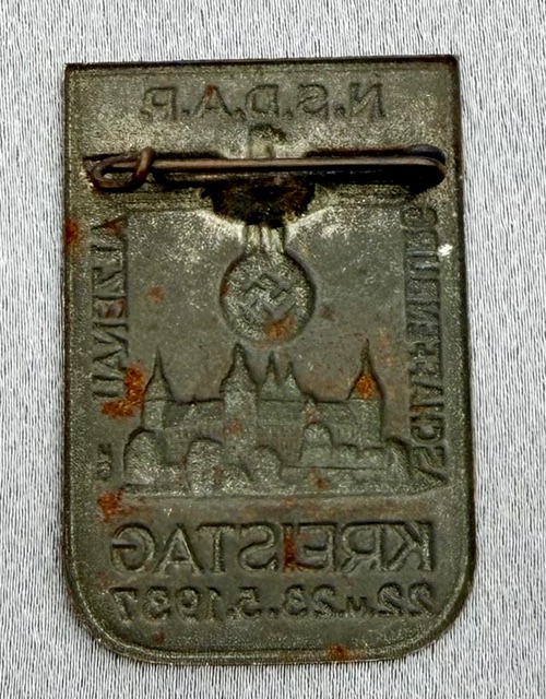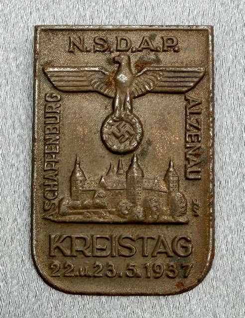 N.S.D.A.P. Aschaffenburg Alzenau Kreistag 22.u.23. 5. 1937 Tinnie, metal pinback, 30mm X 45mm