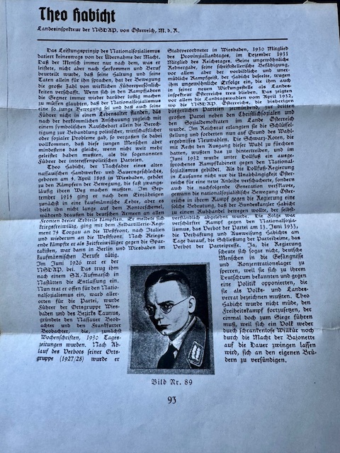 Oberbürgermeister Theodor Habicht, who directed the failed coup attempt in the murder of Austrian Chancellor Engelbert Dollfuß in July 1934, shown here in Wien 1938 ( (Mayor of Wittenberg at this time, period press photo, 4" X 6 1/2"