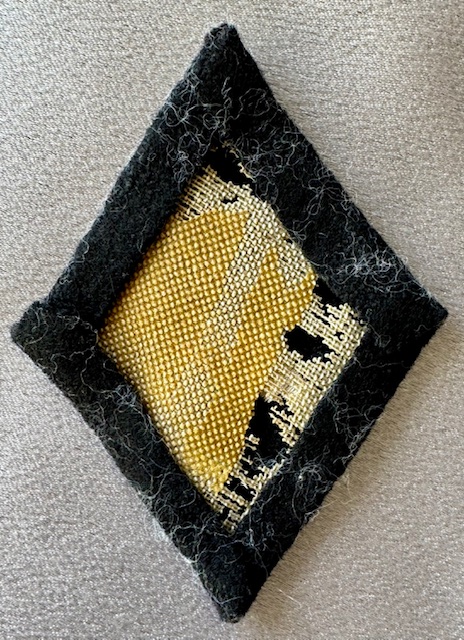 SS Officer Sleeve Diamond for Armorer. Black cloth backing, embroidered crossed rifle and machine gun.