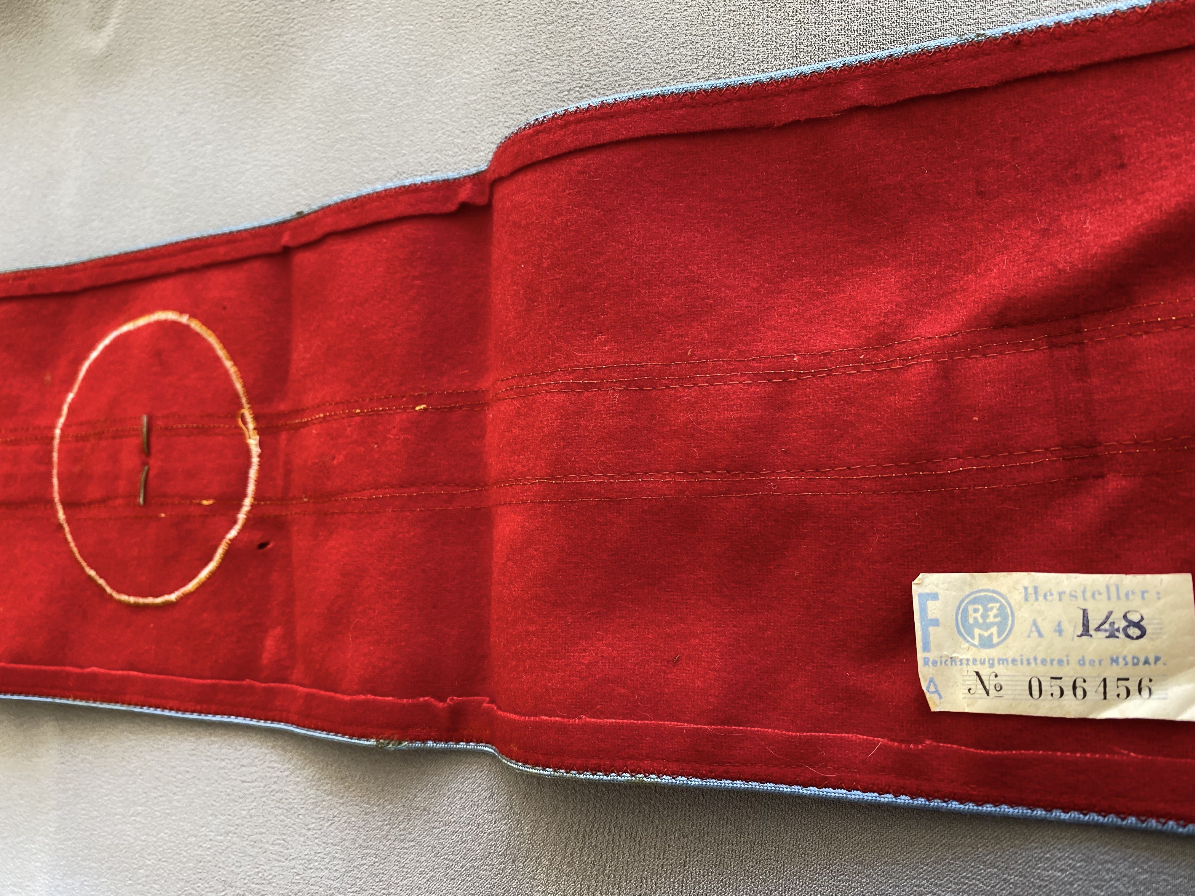Armband for NSDAP Ortsgruppenleiter. Bullion oakleafs with black ribbon swastika and pip to center. Nice example of highest leader at the Orts level. Unsewn, approx. 20" in length