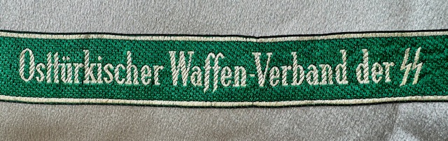Osttürkischer Waffen-Verband der SS Cuff Title. Great looking Bevo example, 16 3/4 inches long.