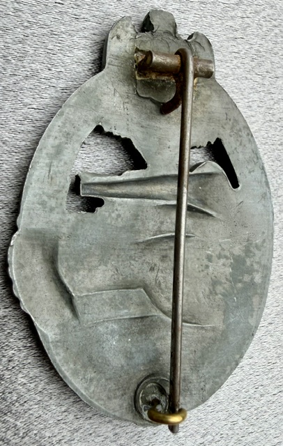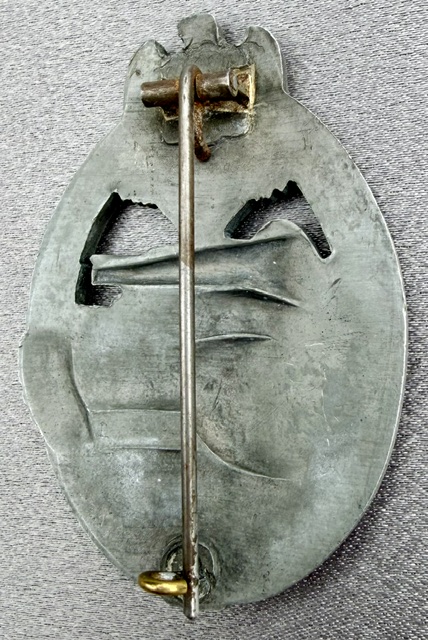 Panzer Assault Badge is an unmarked silver grade by the firm Arno Wallpach of Salzburg, die struck