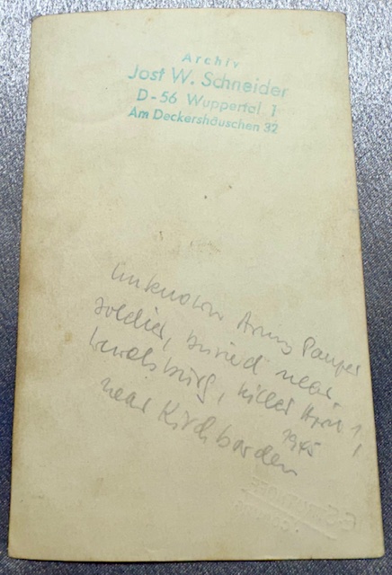 Panzer Soldier Photo, studio photo, embossed "A. Strothoff, Coburg", approx. 3 1/4" X 5 1/4" in size (postcard size)