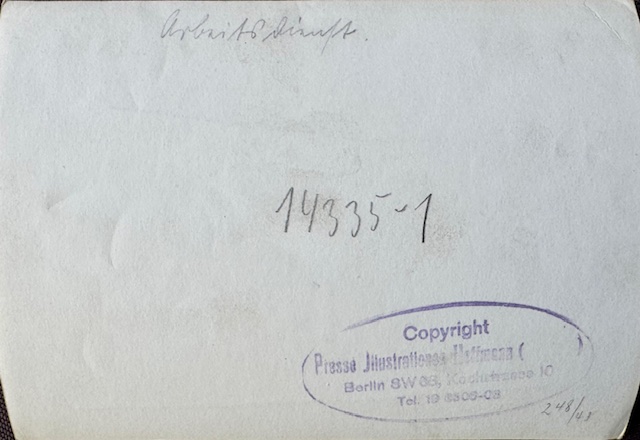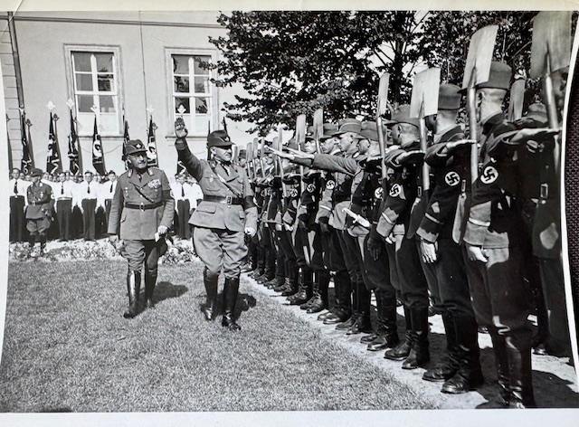 Reichsarbeitsdienstführer Konstantin Hierl inspecting members, period photo, approx. 7" X 5"