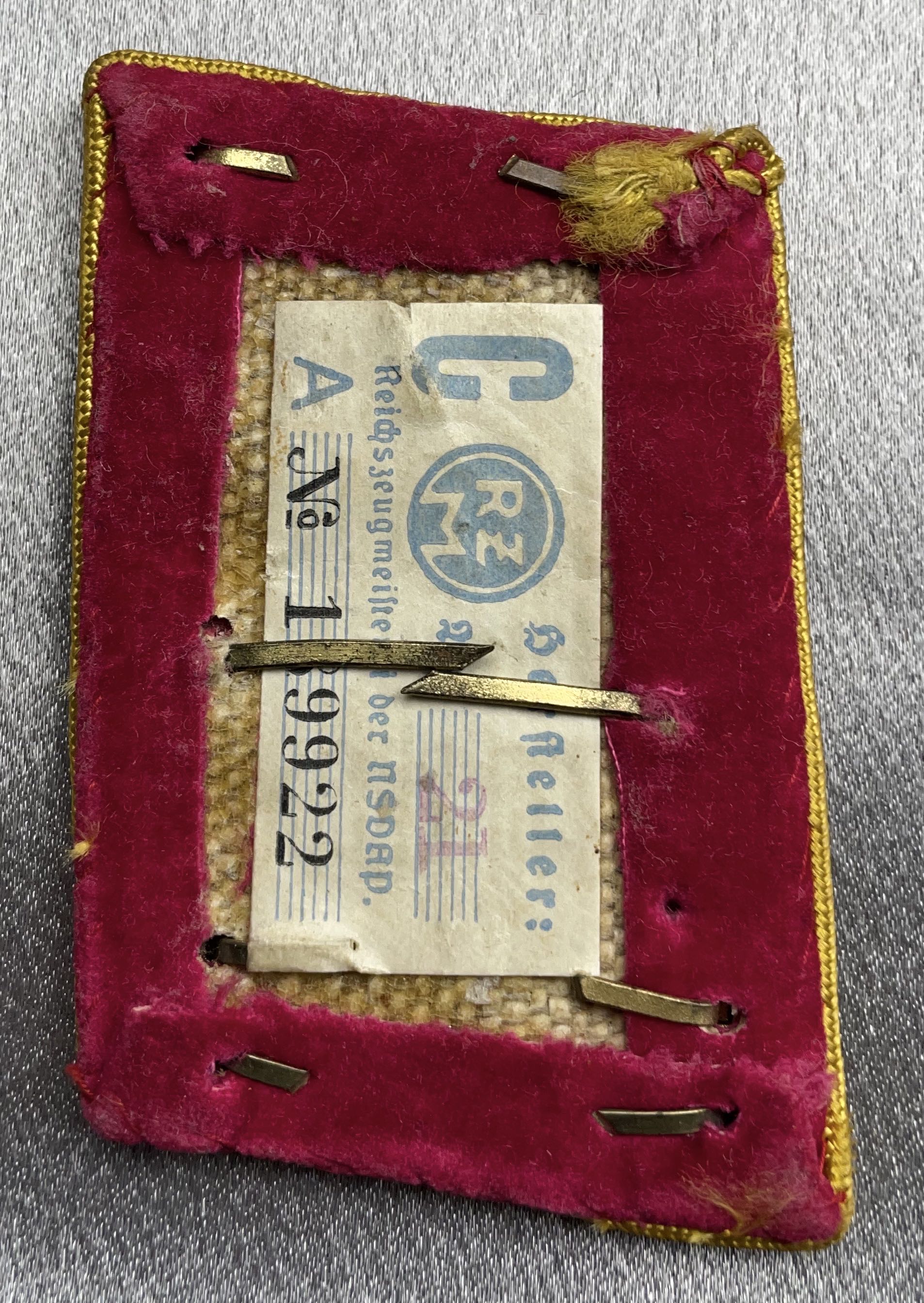 Reichsleitung Hauptbefehlsleiter Tab, RZM tag. This was part of a Standardmuster set at one time