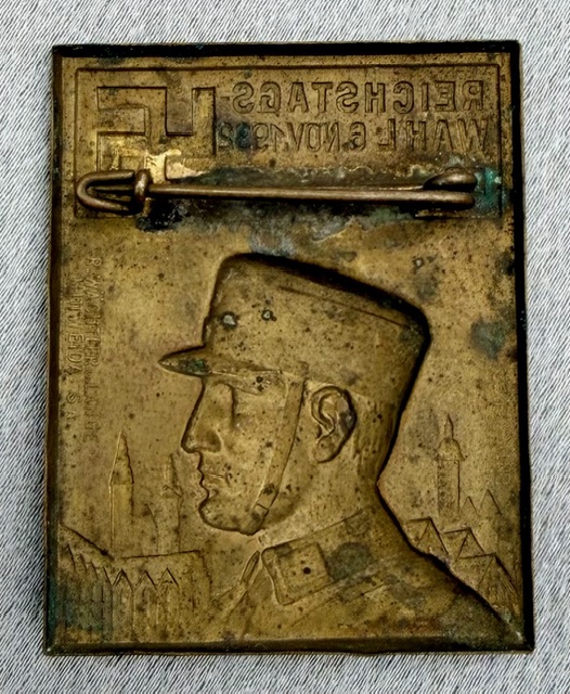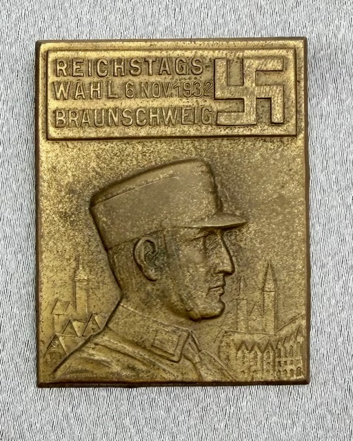 Reichstagswahl 6. Nov. 1932 Braunschweig Tinnie, maker marked to reverse "R. Wächtler u. Long Mittweida", metal pinback, 34mm X 44mm, rare