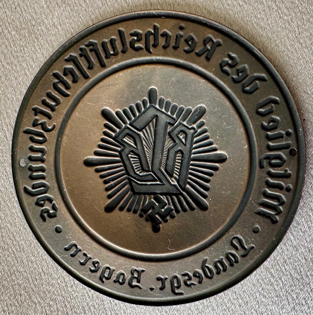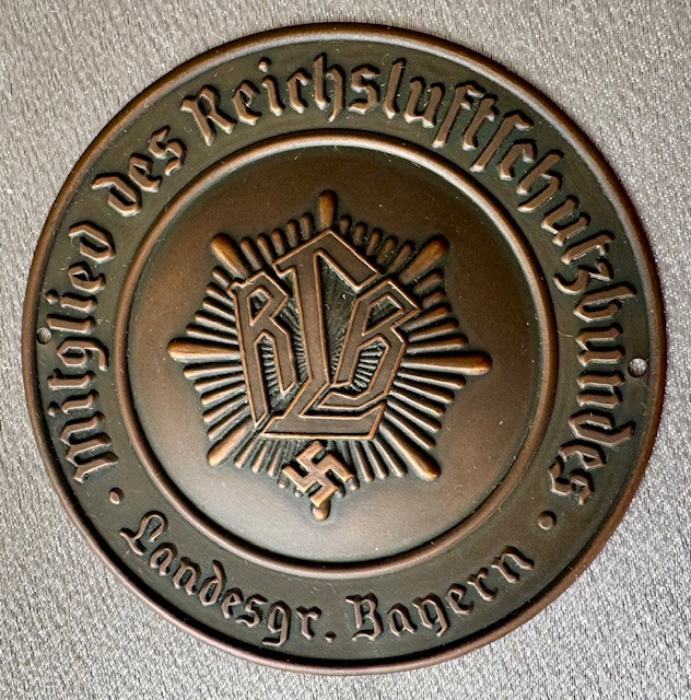 Mitgleid Landesgruppe Bayern, bronze plated aluminum, 72 mm, two mounting pinholes, near mint condition.