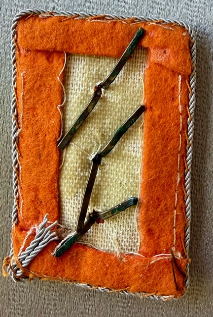 RMBO Eastern Officials Collar Tab for Hauptkommissars/Generalkommissars as indicated by the orange base color with the rank of Regierungsamtmann as indicated by the silver embroidered oakleaves and 3 pips, rare